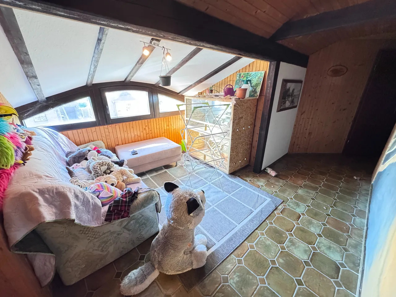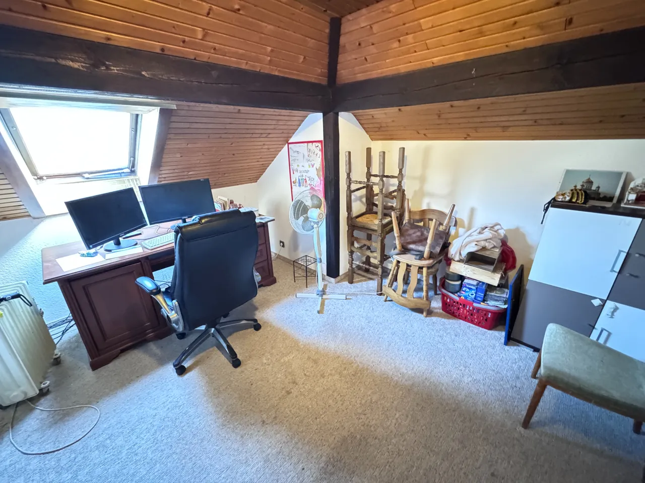 Das ausgebaute Dachgeschoss bietet zusätzliche Nutzfläche mit einem Büro, Hobbyraum sowie einem WC (DG ist keine ausgewiesene Wohnfläche). Auch der Keller bietet genügend Nutz- und Abstellfläche.