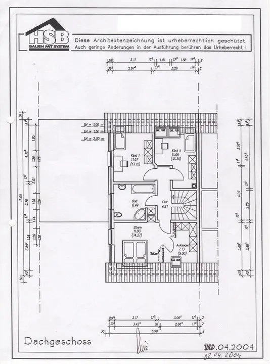 Das Dachgeschoss besteht aus 3 Schlafräumen, einer davon mit Zugang zum Ankleidebereich. Ein Tageslichtbadezimmer mit Dusche und Wanne liegt ebenfalls auf dieser Etage.