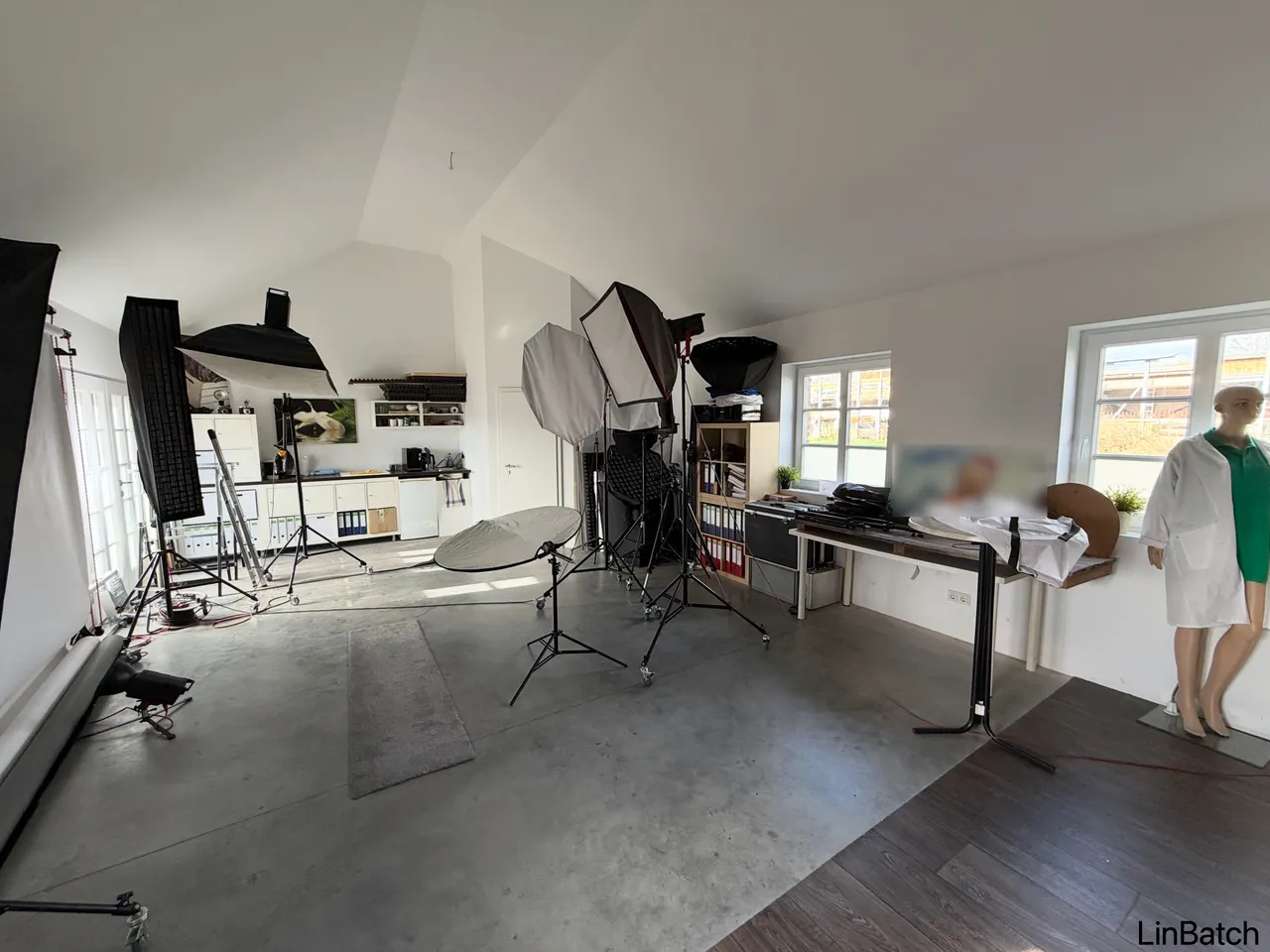 Die ebenerdige Fläche wird aktuell als Fotostudio genutzt und eignet sich ideal für weiterhin ruhiges Gewerbe, wie Agenturen, kreative Dienstleistungen oder klassische Bürotätigkeiten.