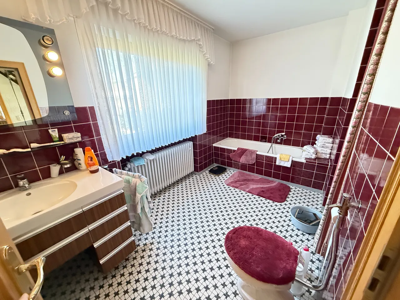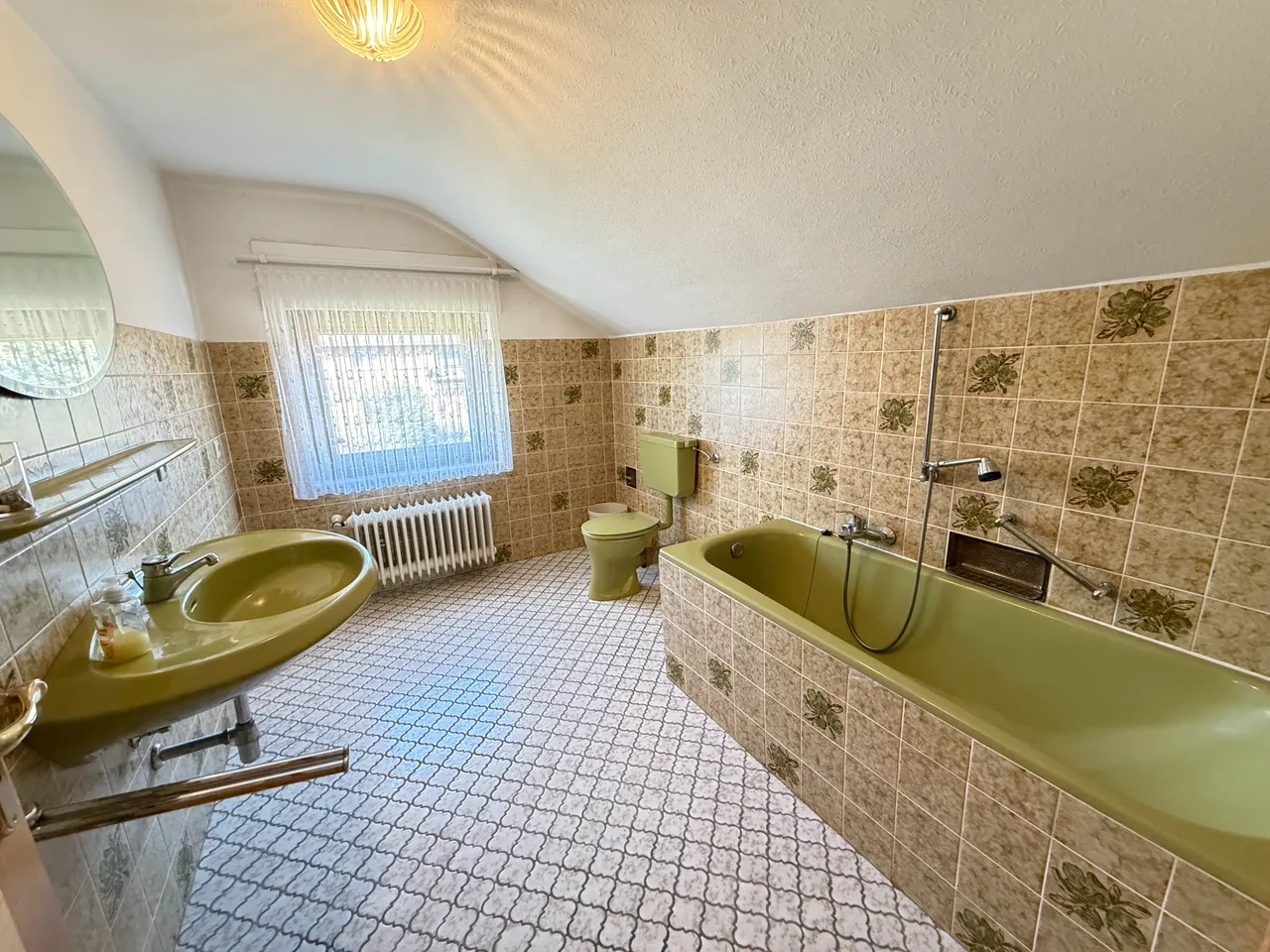 | Bad mit Dusche, Wanne, Fenster |