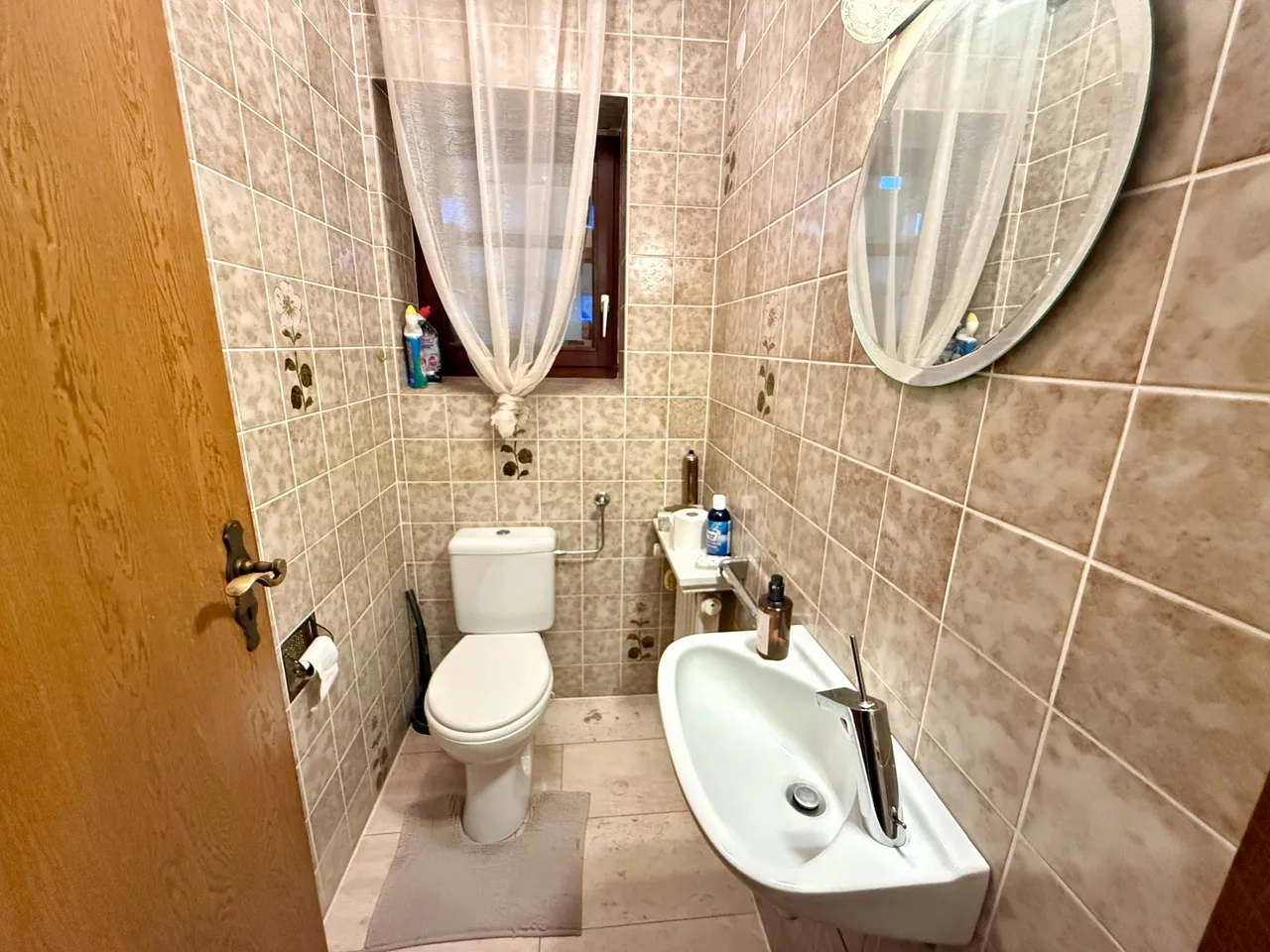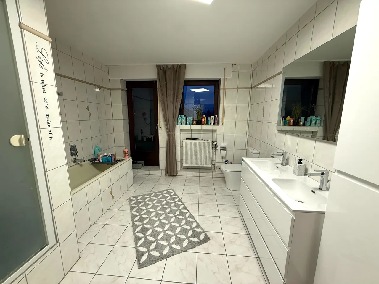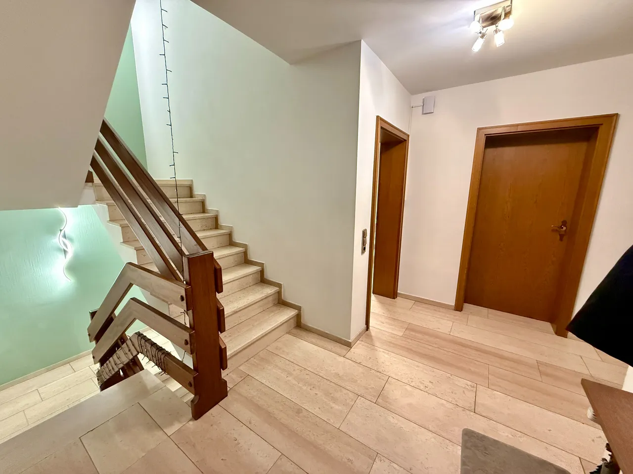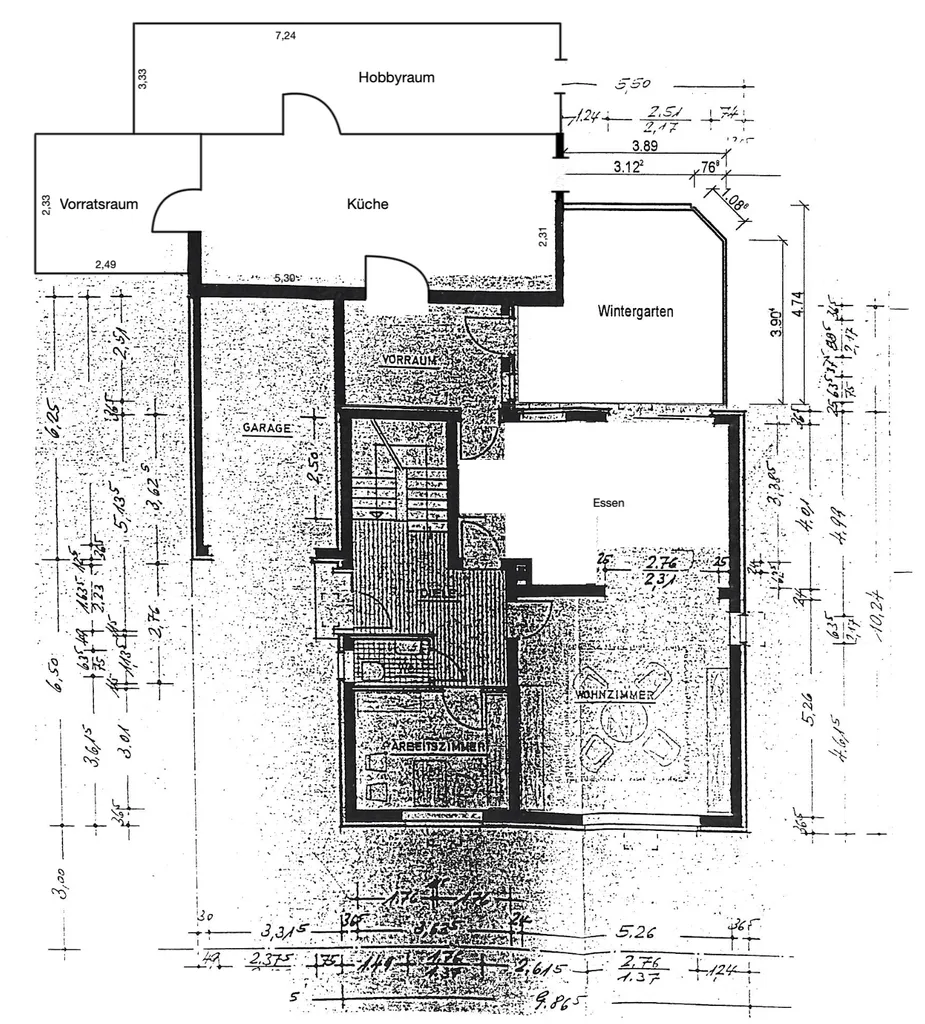 Im Erdgeschoss befinden sich ein gemütliches Wohnzimmer sowie ein großzügiges Esszimmer mit Kamin, das zu geselligen Abenden einlädt. Ergänzt wird diese Ebene durch ein Büro, ein Gäste-WC sowie ein Durchgangszimmer mit Zugang zum Wintergarten. Die Küche, ein Abstellraum und ein Hobbyraum sind als Nutzfläche ausgewiesen. Diese Räume wurden bisher wohnwirtschaftlich genutzt, wurden jedoch in der Flächenberechnung nicht berücksichtigt.