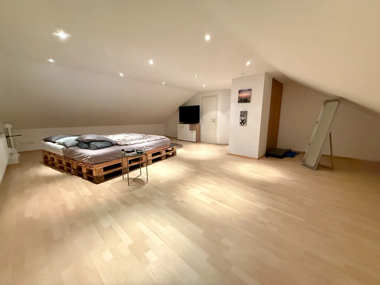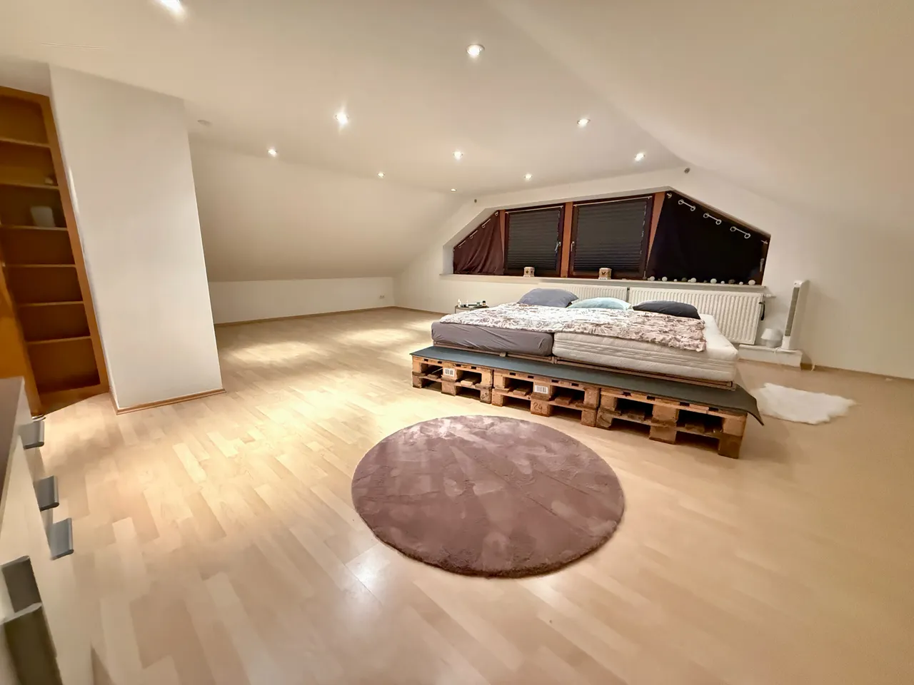Auch das Dachgeschoss ist ausgebaut und wird als Nutzfläche angesehen, genießt jedoch wohnwirtschaftlichen Nutzen. Hier befindet sich ein großes Schlafzimmer mit angrenzendem Ankleideraum, das sich ideal als einen privaten Rückzugsbereich eignet.