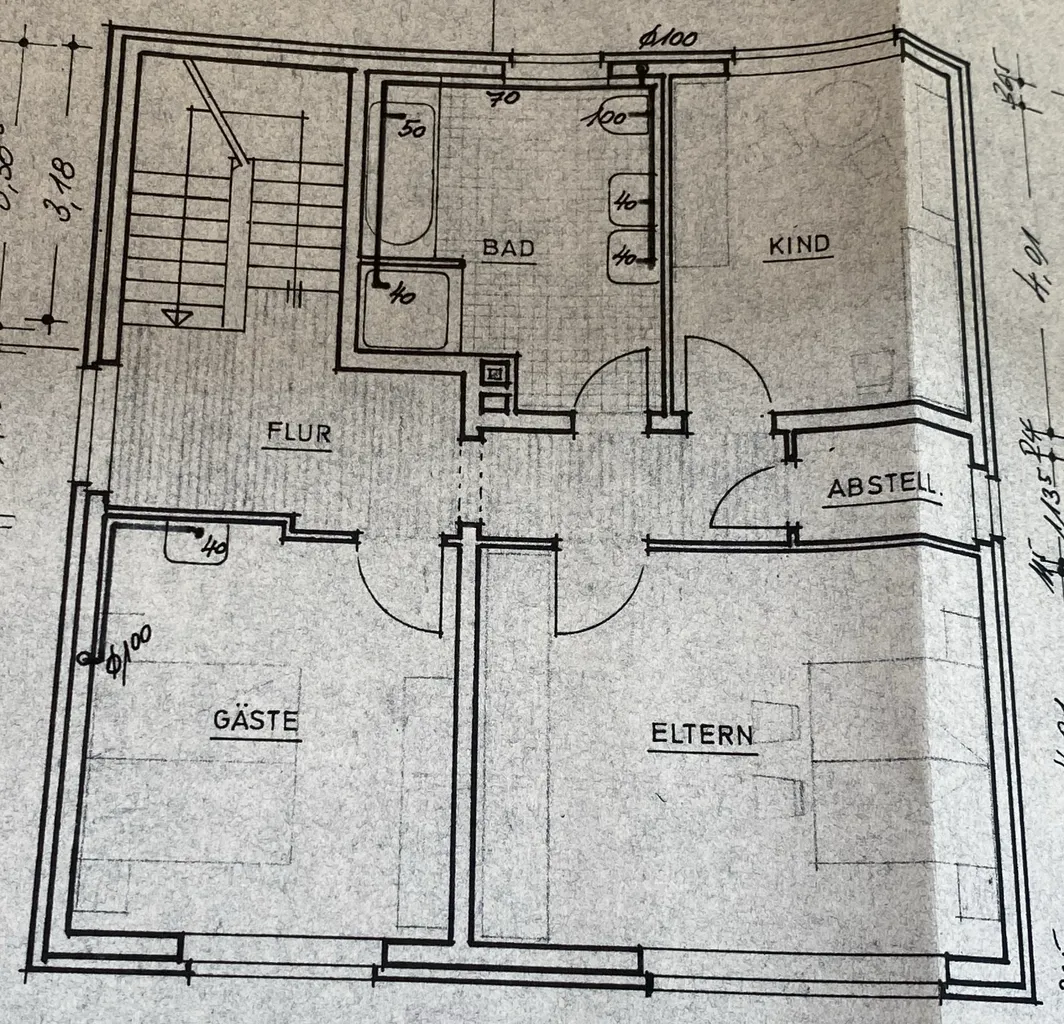 Das Obergeschoss verfügt über drei gut geschnittene Schlafzimmer, einen kleinen Abstellraum sowie ein Tageslichtbad mit Badewanne und Dusche.